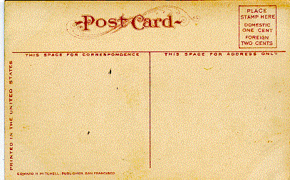 "PUBLISHED BY EDWARD. H. MITCHELL, SAN FRANCISCO, CAL." (All small(s) capitol letters at Left edge of card)